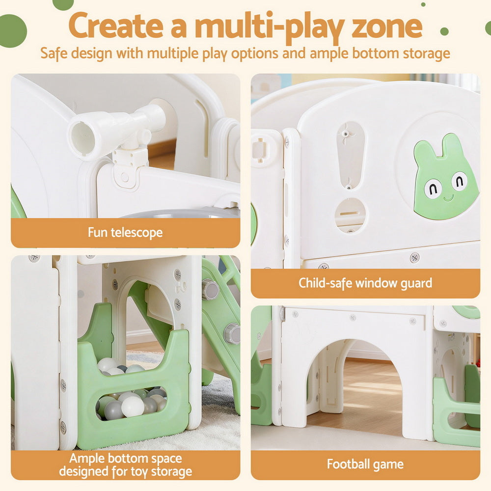 Keezi Kids Slide Swing Set Ball Hoop Rings Football Outdoor Toys Green